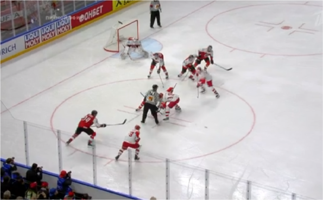 Повела наша сборная уже в первом периоде матча — в середине отрезка отличился Михаил Григоренко. Стоит заметить, что первые десять минут отрезка австрийцы сопротивлялись вполне успешно, а нашим ребятам явно не хватало концентрации. Как только нужный настрой на игру с более слабым, но уверенным в себе соперником, был найден, характер игры изменился: скорости подросли, а атаки стали точнее. В результате счёт очень быстро добрался до отметки 3:0. Вторую шайбу забросил Артём Анисимов, автором третьей стал Александр Барабанов.