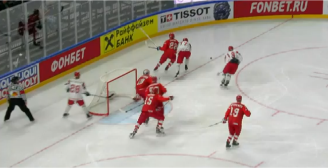 Цифры 0:5 зажглись на табло копенгагенской арены через пять минут после старта третьего периода, когда Максим Мамин ловко подправил движение шайбы в свободную область белорусских ворот. Забавно, но и в первых двух пеориодах первые голы забивались на пятой-шестой минутах игры. Немногим позже пришла пора отличиться и Кириллу Капризову, который забил шестой гол, не став делиться шайбой с капитаном команды. Павел Валерьевич не смог оформить хет-трик, но конечно не был против решения Кирилла:) Снова закончить игру со счётом 7:0 в этот раз не вышло, попробуем со сборной Канады?